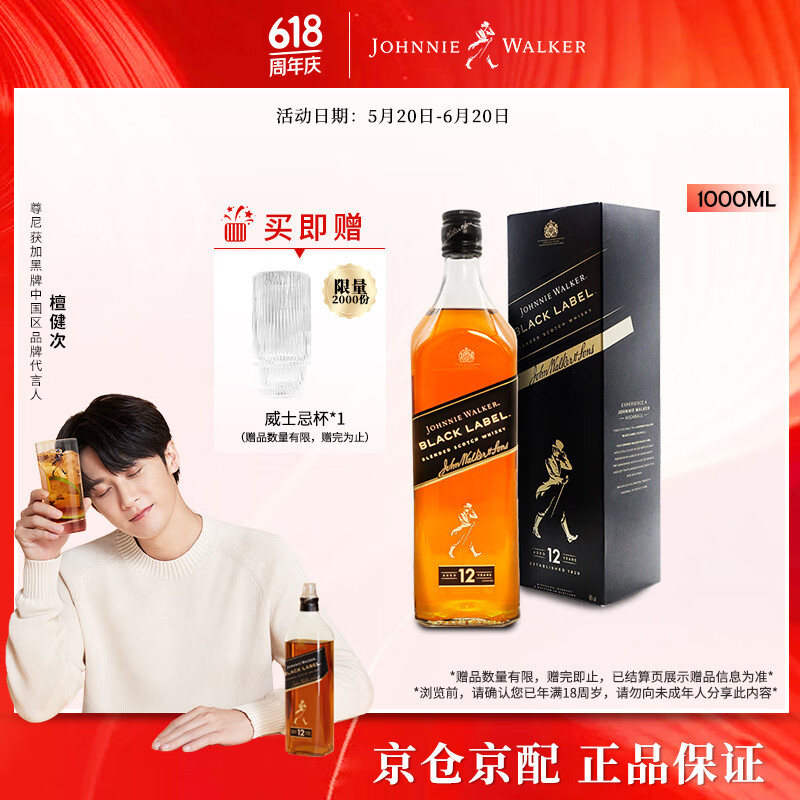 尊尼获加(JOHNNIE WALKER)洋酒 黑牌黑方 12年苏格兰调和型威士忌1000ml盒装价格:245.00元!
