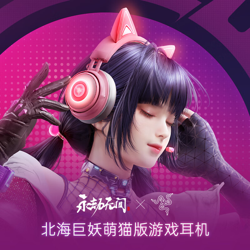 雷蛇(Razer)北海巨妖萌猫版 有线头戴式电竞游戏耳机耳麦 网红猫耳 RGB灯效 吃鸡神器 粉色价格:499.00元!