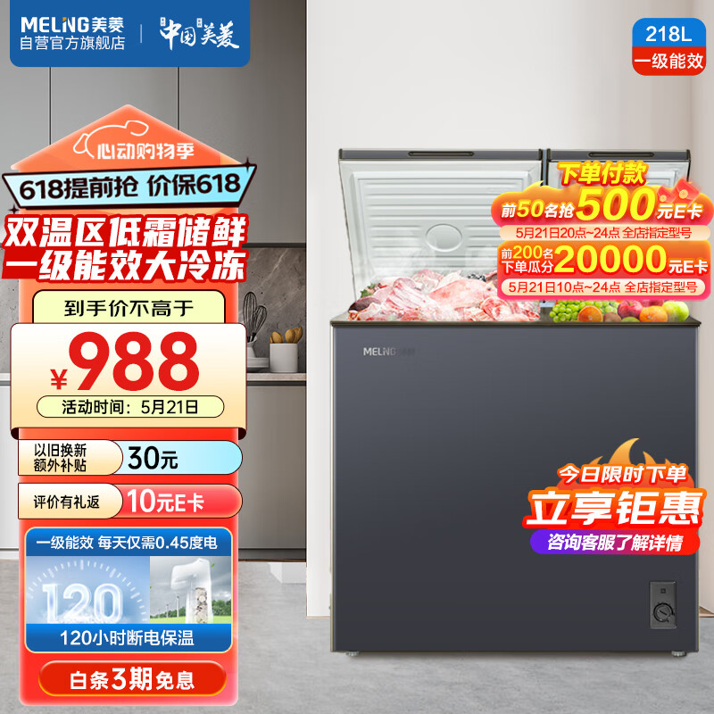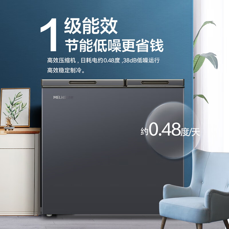 美菱(MeiLing)218升大容量家用商用冰柜 双箱双温冷柜 顶开门一级能效节能 冷藏冷冻卧式冰箱BCD-218DTCX价格:988.00元!
