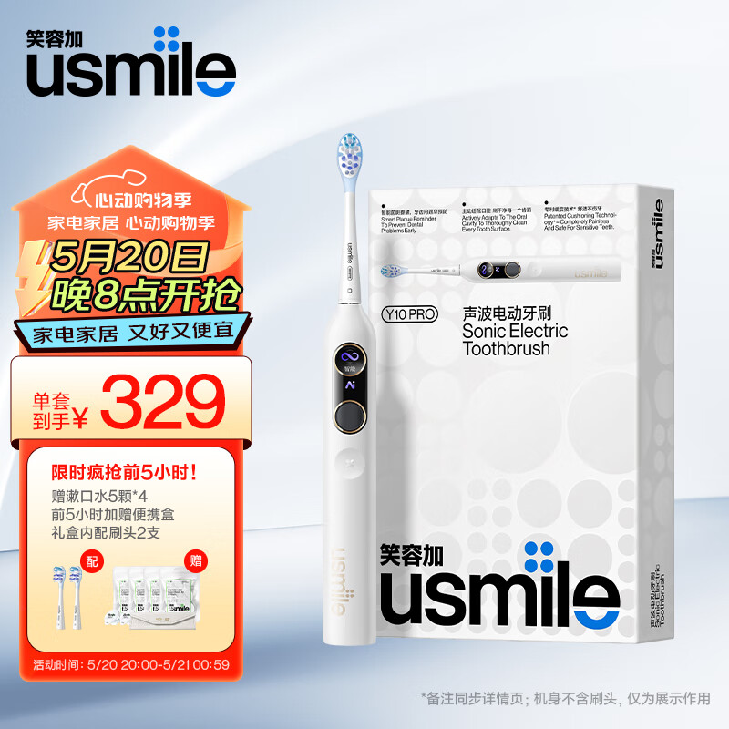 usmile 笑容加电动牙刷 成人声波震动电动牙刷 情侣款送男友/送女友 Y10PRO水白色 520情人节礼物价格:379.00元!