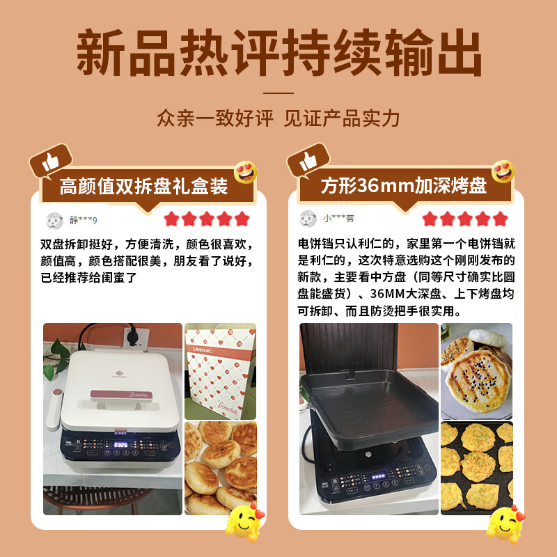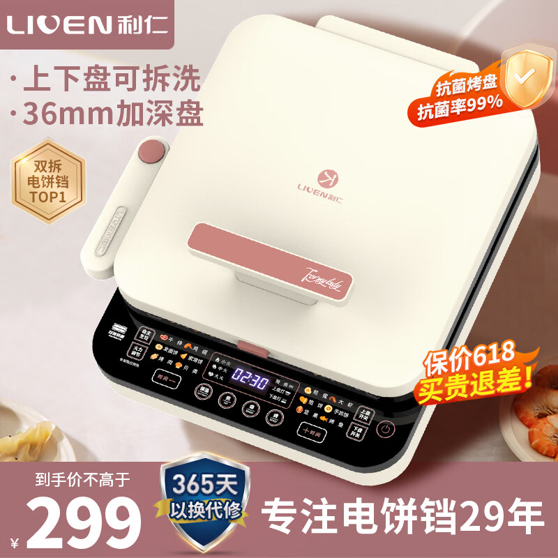 利仁(Liven)电饼铛上下盘可拆洗36mm加深盘家用双面加热电饼档大尺寸烙饼锅三明治早餐机电饼锅 LR-D3529价格:299.00元!