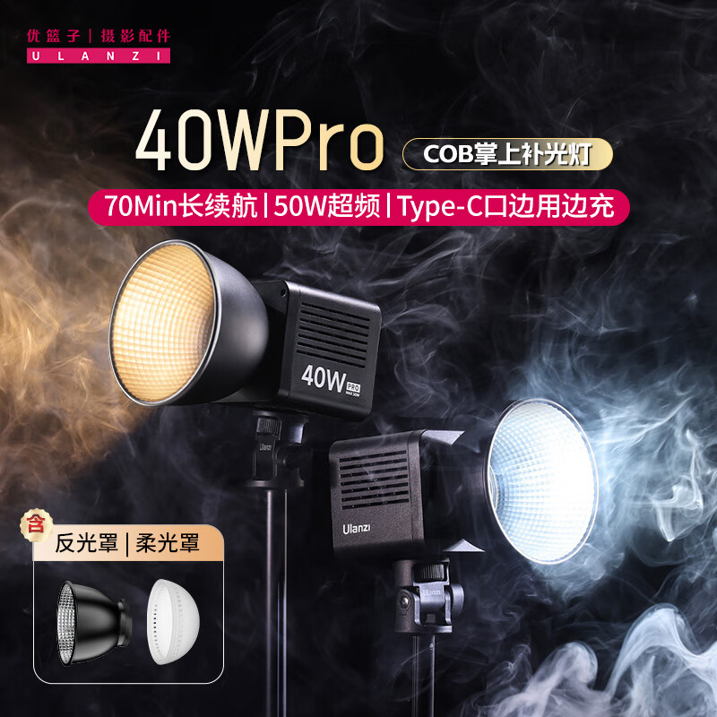 优篮子ulanzi 40WPro补光灯双色温COB摄影灯户外内置电池微单相机直播灯美颜影棚灯(不含适配器)价格:299.00元!