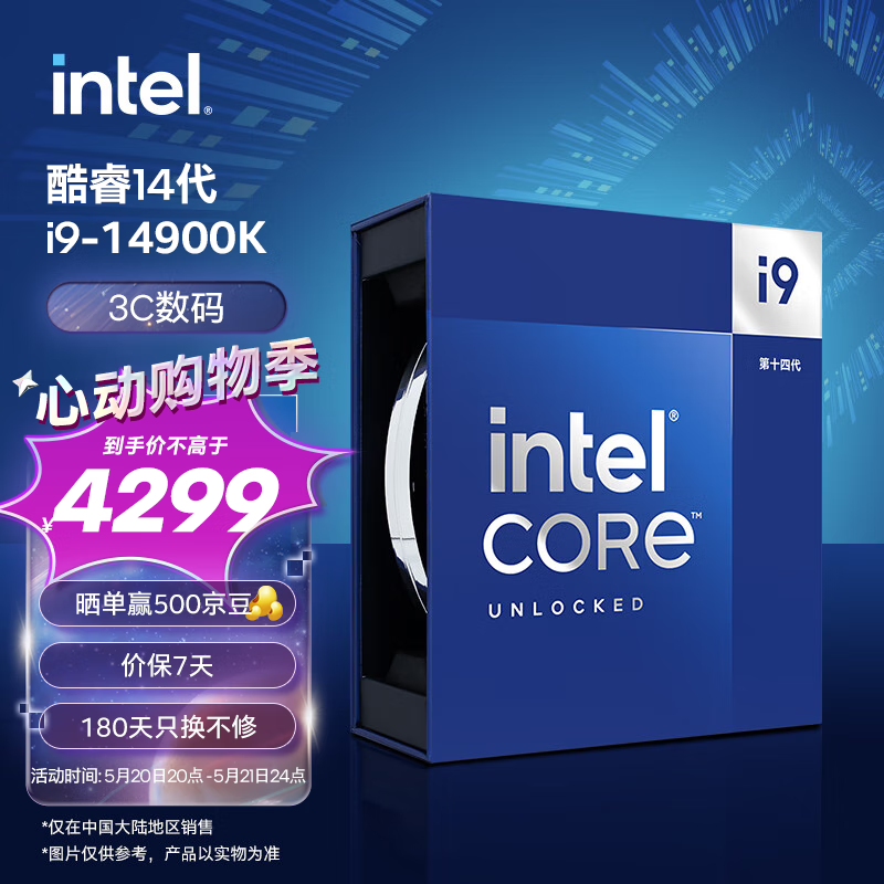 英特尔(Intel) i9-14900K 酷睿14代 处理器 24核32线程 睿频至高可达6.0Ghz 36M三级缓存 台式机盒装CPU价格:4299.00元!