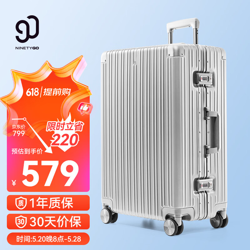 90分PC旅行箱轻质铝框行李箱防刮大容量拉杆箱26英寸托运箱太空银价格:669.00元!