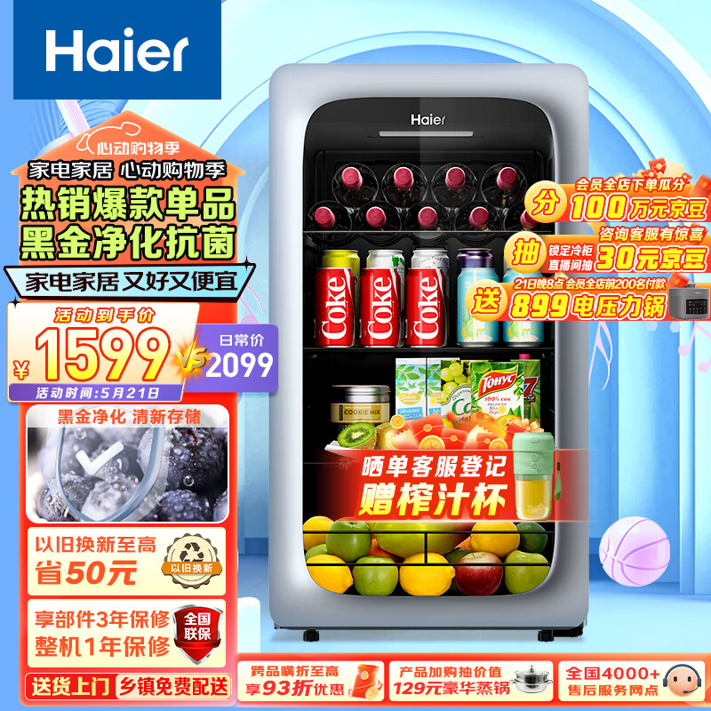 海尔(Haier)92升家用客厅办公室冷藏柜暖藏冰吧茶叶饮料水果蔬菜保鲜柜小型冰箱冰河银LC-92LH9ES1以旧换新价格:1699.00元!