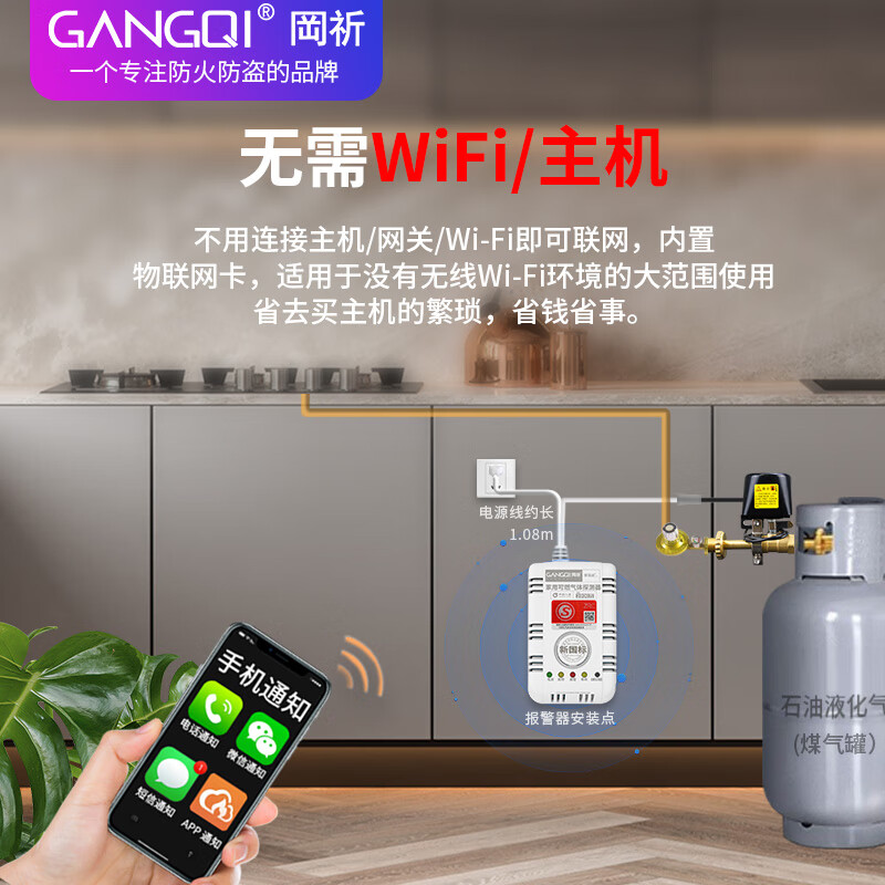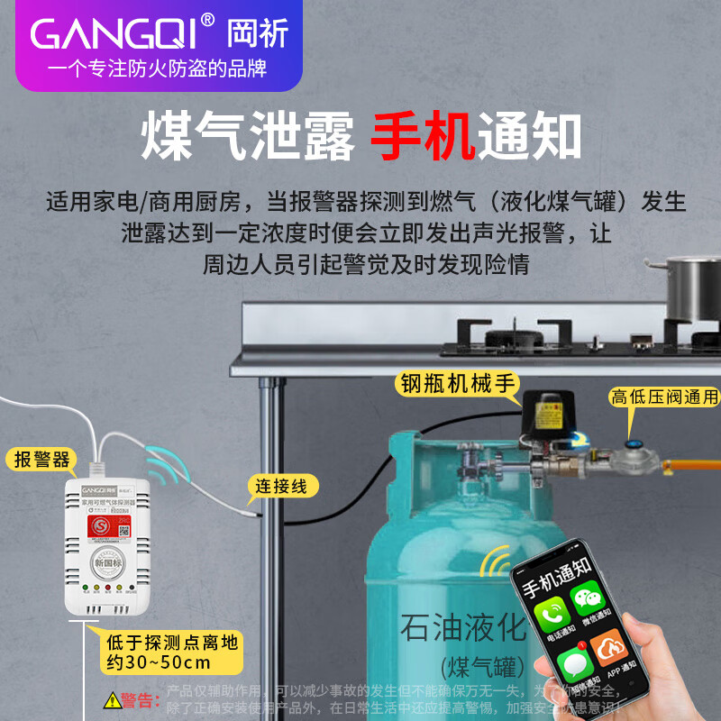 岡祈(Gangqi)NB联网手机通知 燃气报警器自动断气切断阀 液化气煤气报警器探测泄露家用商用厨房钢瓶机械手价格:249.00元!