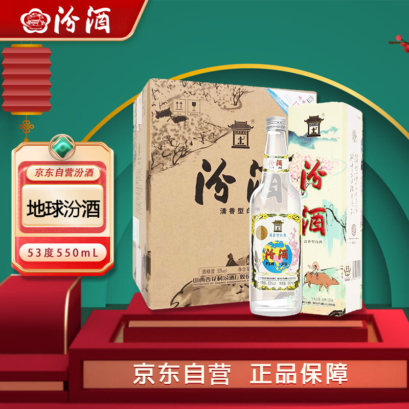 汾酒 地球汾盒装 清香型白酒 53度550ml*6瓶 整箱装价格:1265.00元!