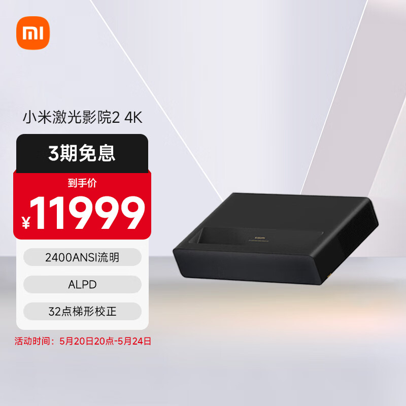 小米激光影院2 4K 100英寸 2400ANSI流明 杜比全景声 ALPD 32点梯形校正 MEMC运动补偿价格:11999.00元!