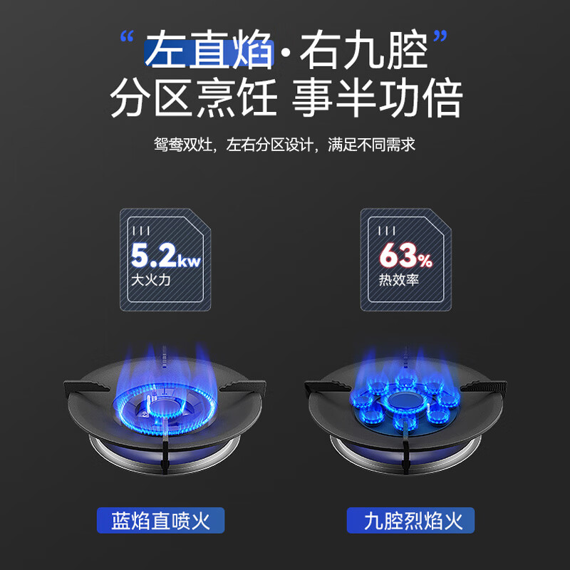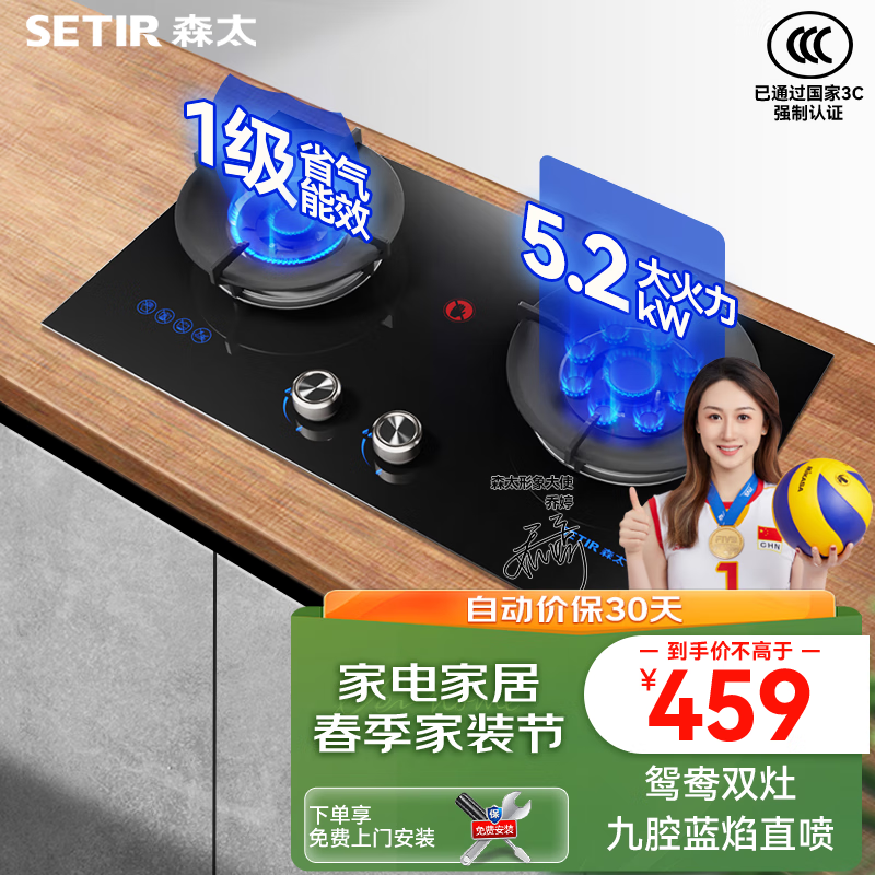 森太(SETIR)家用燃气灶天然气灶双灶台嵌两用 5.2kW大火力九腔猛火灶鸳鸯双灶 JZT-T263价格:509.00元!