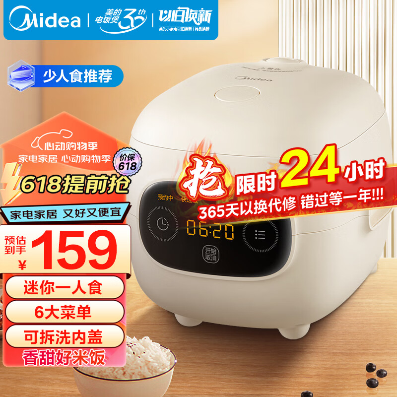 美的(Midea)大眼萌 智能电饭煲电饭锅1-2人食1.2L迷你宿舍萌趣黑晶内胆蒸煮米饭锅FB12X1-306E价格:159.00元!
