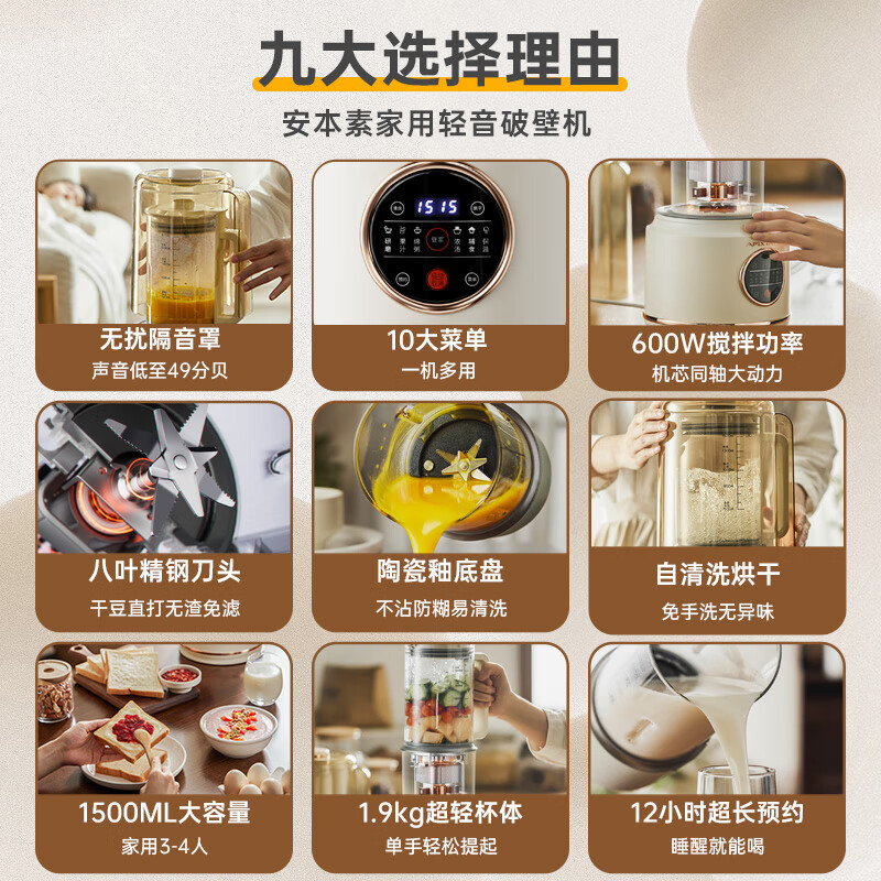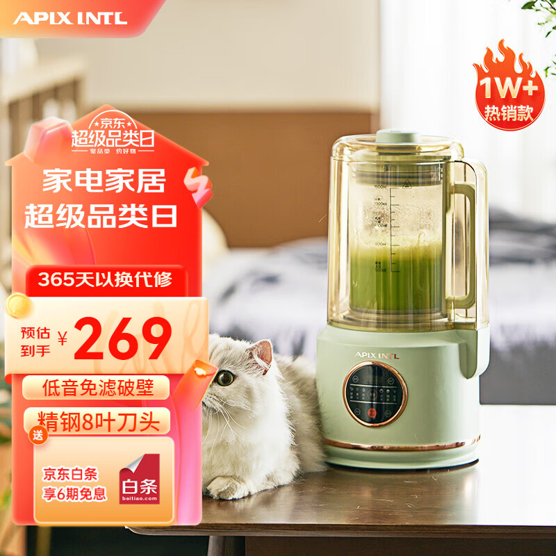 APIXINTL安本素柔音破壁机家用豆浆机加热全自动榨汁机搅拌机早餐机低音非静音 薄荷绿价格:267.26元!