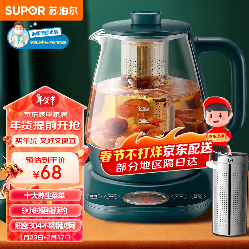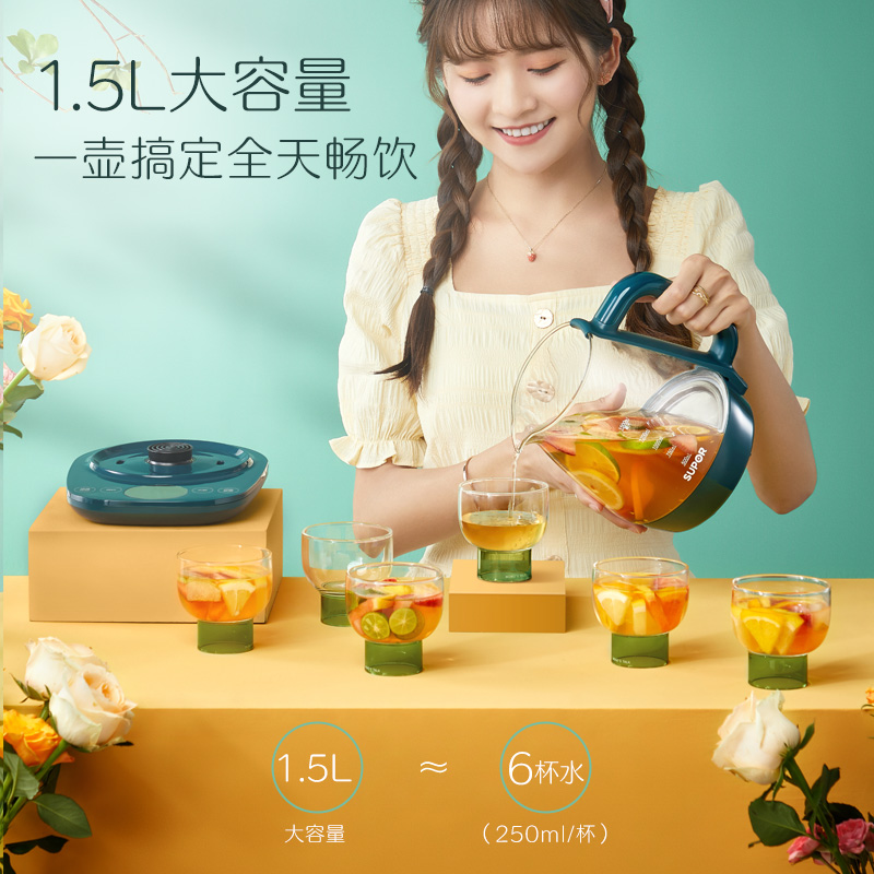 苏泊尔(SUPOR)养生壶 煮茶器 花茶壶电茶壶 电水壶烧水壶电热水壶 1.5L 煮茶壶 玻璃电水壶SW-15YT01(滤网)价格:68.00元!