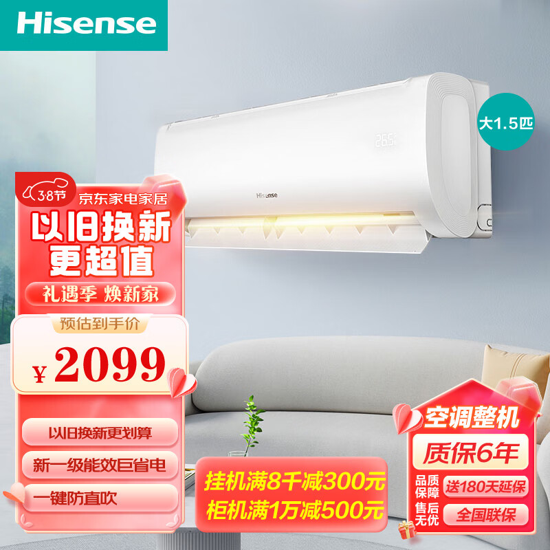 海信(Hisense)大1.5匹 速冷热 新一级能效 大风量速冷暖 APP智能防直吹壁挂式卧室空调挂机KFR-35GW/E370-X1价格:2599.00元!