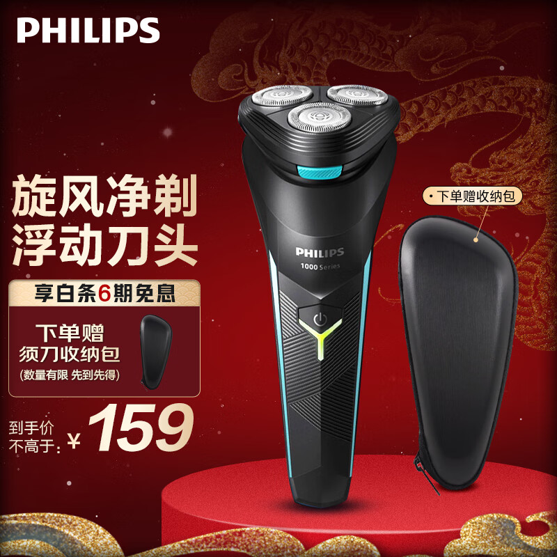 飞利浦(PHILIPS)剃须刀电动 全身水洗 1小时快充 便携式刮胡刀 男士生日送男友送父亲 【炫酷机身】S1000 普通装价格:209.00元!