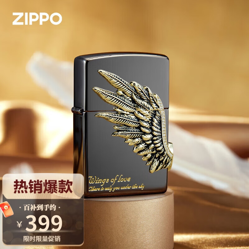ZIPPO打火机之宝防风煤油 爱情之翼-黑冰 520礼物送男友送老公 单机价格:399.00元!