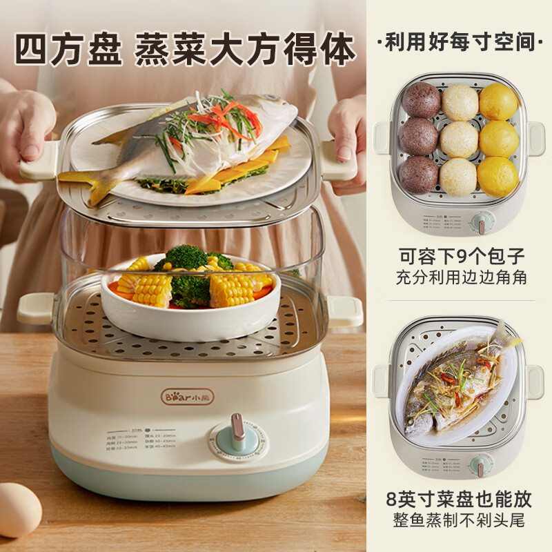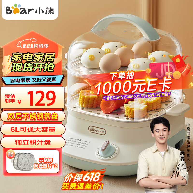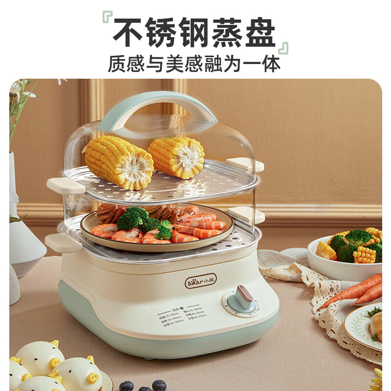小熊(Bear)电蒸锅 煮蛋器 不锈钢 家用蒸馒头包子早餐可定时 蒸煮一体自动断电小型多功能锅DZG-C60W9价格:124.00元!