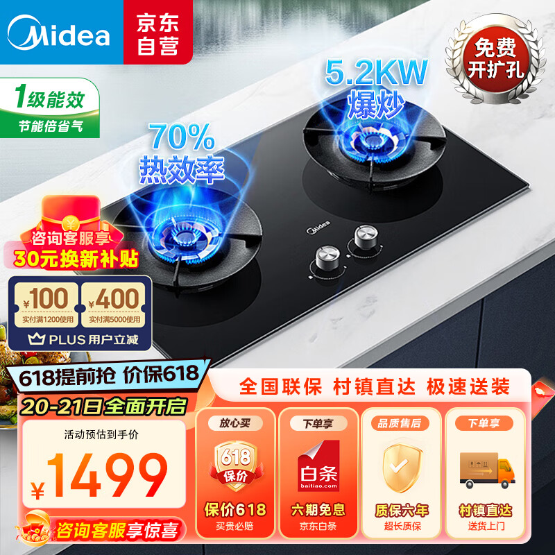 美的(Midea)燃气灶天然气 双灶具 家用5.2kW猛火聚能灶台嵌两用 搪瓷易打理 高能效灶 节能灶 Q529L-M价格:1599.00元!