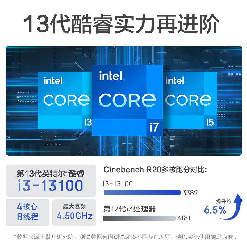 攀升 商睿3 酷睿i3办公商用家用台式电脑主机(13代i3-13100 16G 1TBGSSD Type-C WiFi)21.5英寸价格:2999.00元!