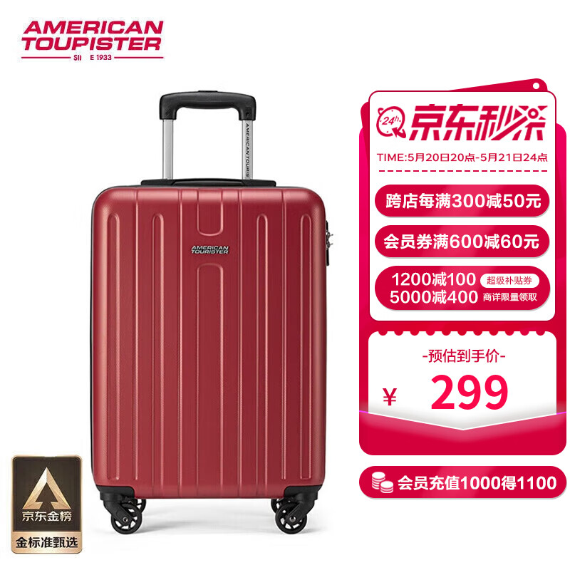美旅箱包时尚条纹行李箱登机箱旅行箱男女大学生婚庆密码箱TC3红色20英寸价格:378.00元!