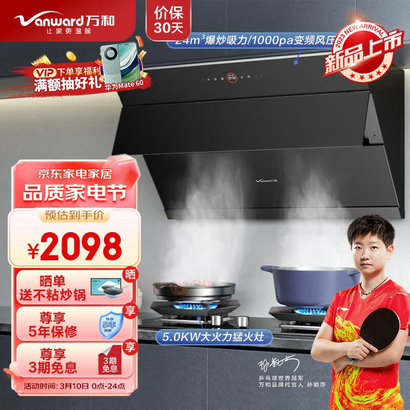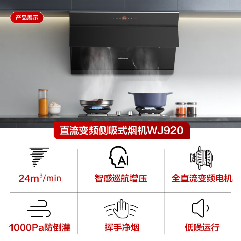 万和(Vanward)侧吸式家用抽油烟机 燃气灶具烟灶套装 24风量 直流变频大风压烟灶套装 WJ920+C5L90S(天然气)价格:2098.00元!