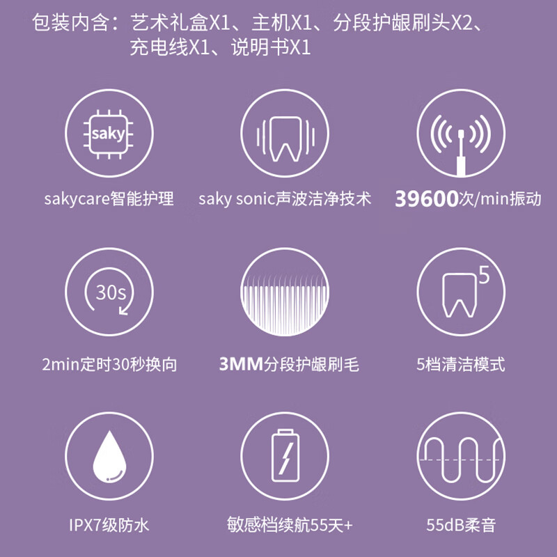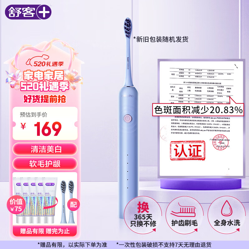 舒客舒克情侣电动牙刷智能清洁成人/学生男友/女友软毛声波5档模式 情人节礼物 G33A蓝莓价格:219.00元!