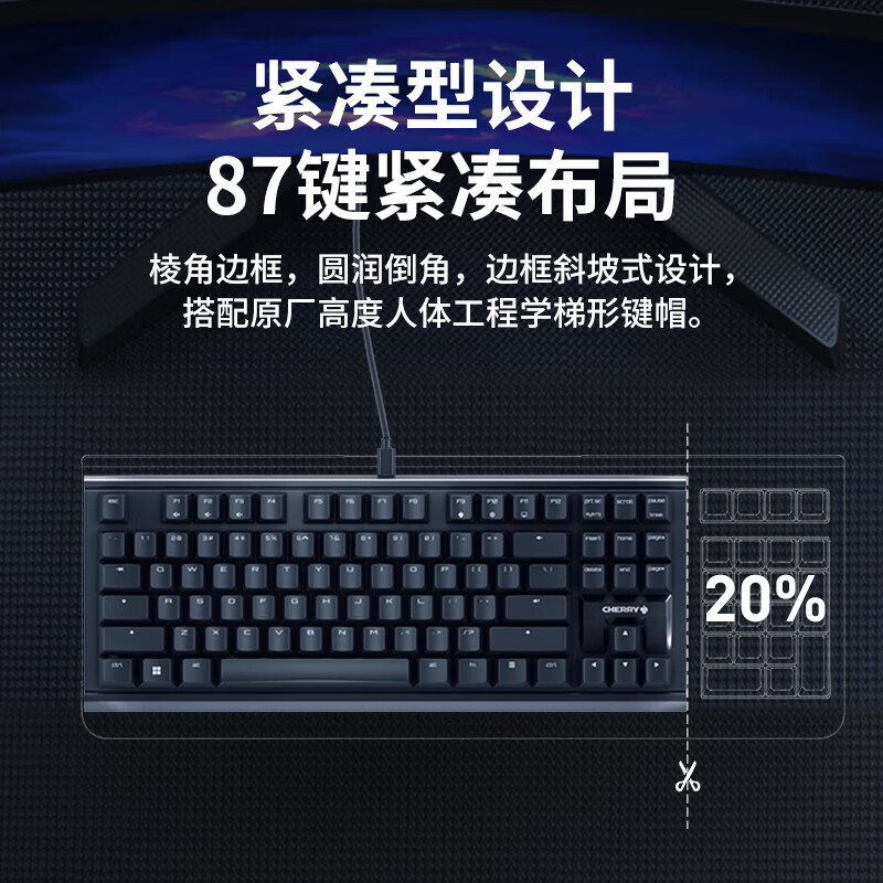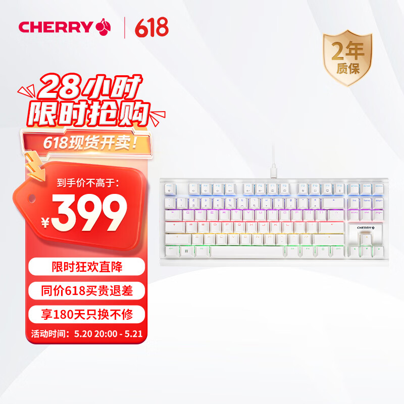 CHERRY樱桃MX1.1雪原极光 机械键盘 游戏键盘 悬浮式无钢结构 87键有线键盘 RGB灯效 电脑键盘 白色 红轴价格:399.00元!