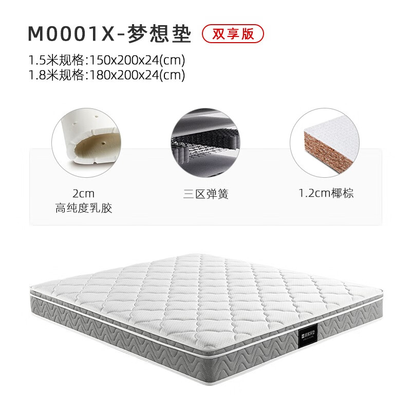 顾家家居床垫乳胶独袋弹簧环保椰棕席梦思梦想垫M0001X1.5米价格:1699.00元!