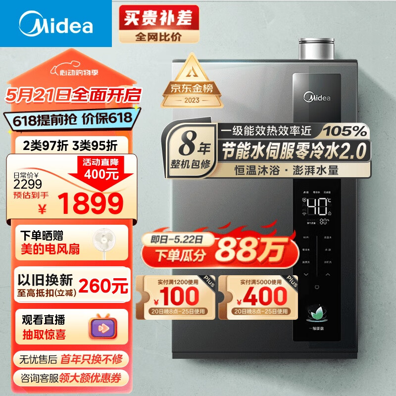 美的(Midea)16升燃气热水器 天然气 超一级能效节能 水伺服恒温 增压零冷水 多重防冻 多重安防 JSLQ27-16LN3价格:2199.00元!