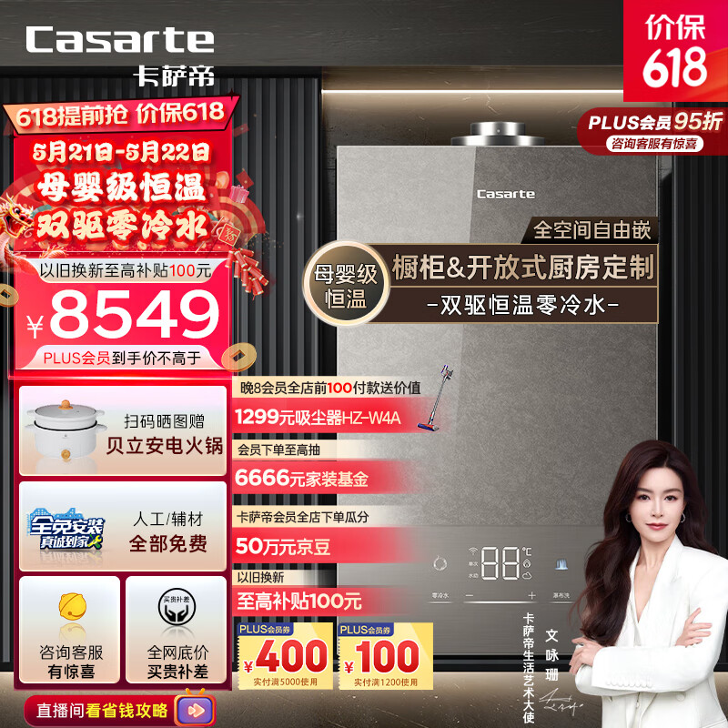 卡萨帝(Casarte)16升平衡式家用恒温燃气热水器天然气三管零冷水全隐藏安装静音双驱水伺服增压JSG31-16CU5FRVGU1价格:8999.00元!