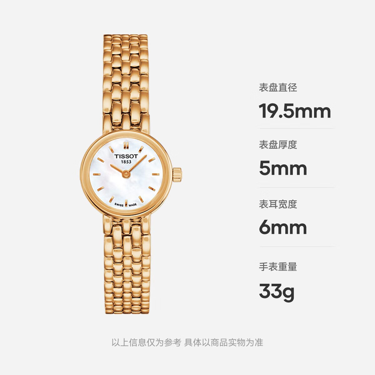 天梭(TISSOT)手表 小可爱系列钢带石英女表 520送女友T058.009.33.111.00价格:3400.00元!