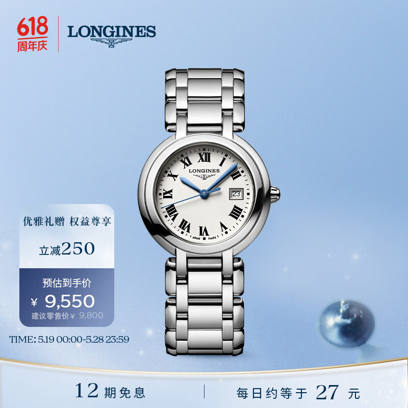 浪琴(LONGINES)瑞士手表 心月系列 石英钢带女表 520情人节礼物 L81224716价格:9550.00元!