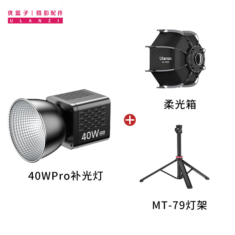 优篮子ulanzi 40WPro补光灯(2M灯架+柔光箱)双色温COB摄影灯户外内置电池(不含适配器)价格:569.00元!