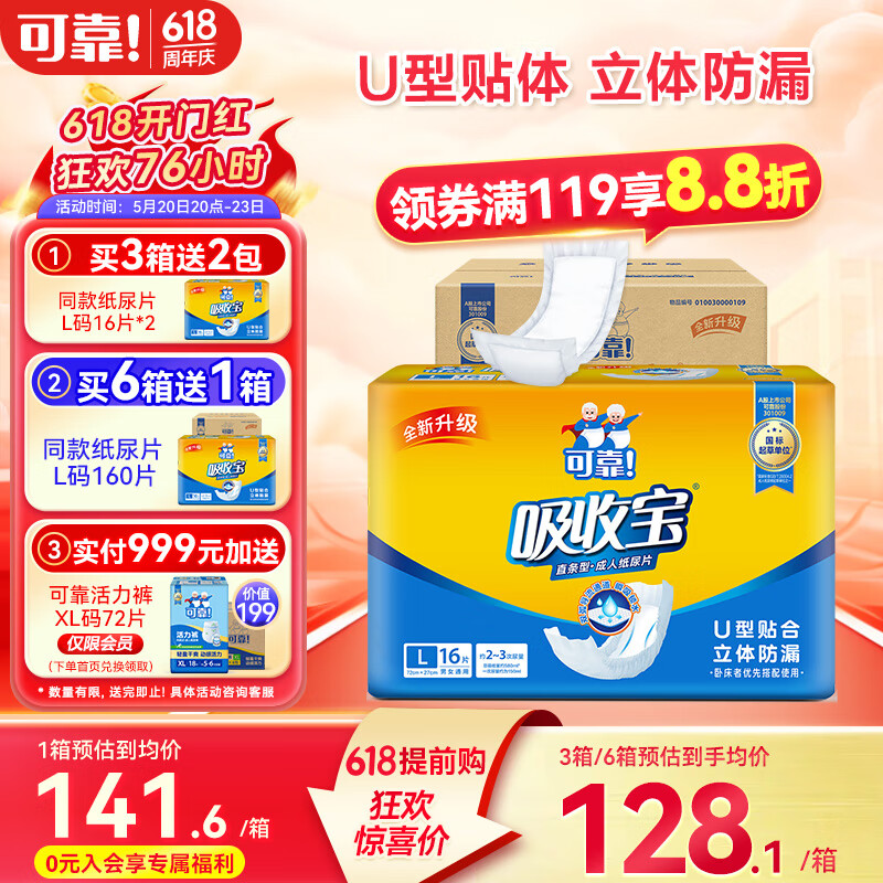 可靠(COCO)吸收宝成人纸尿片尺寸72*27cm 160片产妇纸尿片老年人尿片价格:195.00元!
