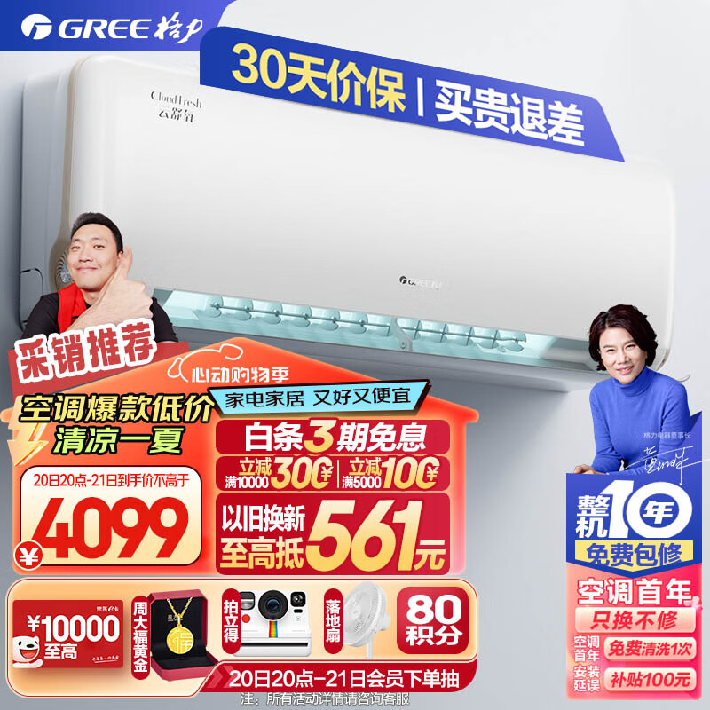 格力(GREE)新风空调 京东小家智能生态 1.5匹 云舒氧1级能效 壁挂式卧室挂机KFR-35GW/NhHf1BAj价格:4099.00元!