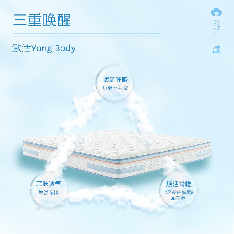 喜临门负离子乳胶 七区独袋弹簧黄麻床垫 漾1.5x1.9米价格:2699.00元!
