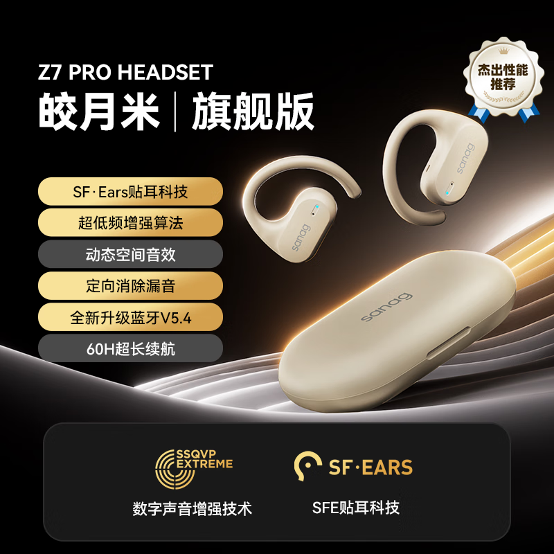 SANAG塞那 Z7 骨传导概念蓝牙耳机开放式挂耳式不入耳挂耳式运动通话降噪夹耳夹式耳机适用华为 米色价格:218.00元!