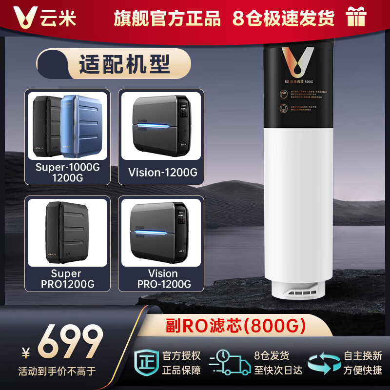云米(VIOMI)云米净水器滤芯Super1000G/1200G /Super Pro、Vision Pro 1200G 澎湃、Easy3系列通用滤芯 RO膜800G(Super、Vision专用)价格:699.00元!