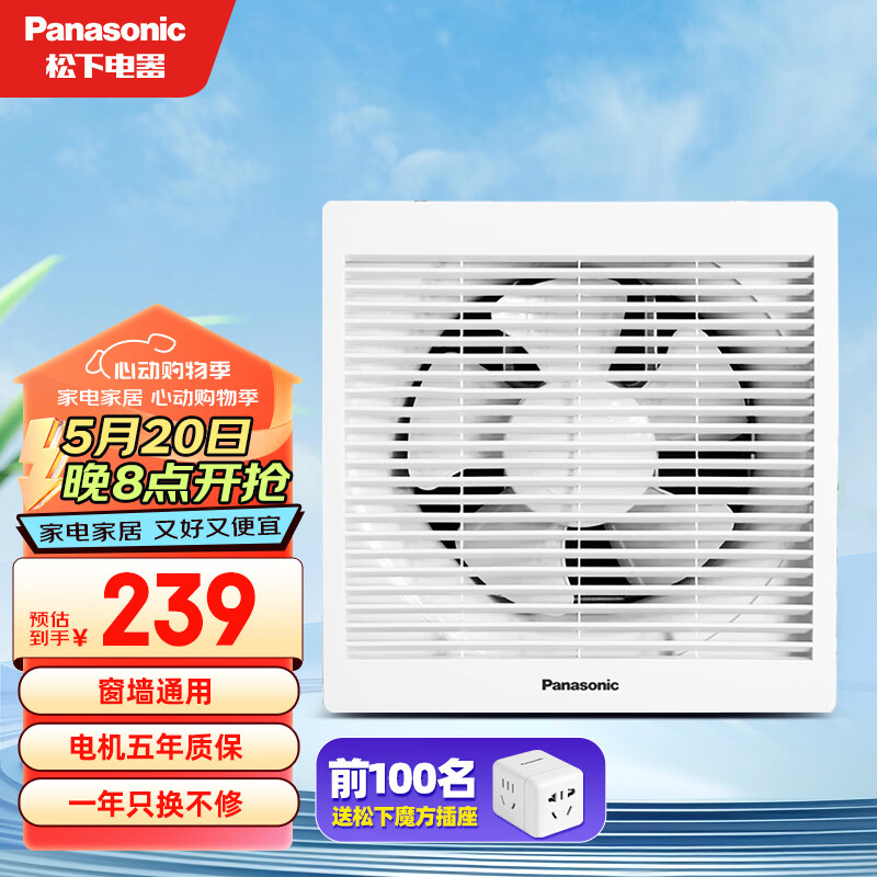 松下(Panasonic)换气扇窗墙式排气扇排风扇卫生间厨房抽风扇浴室排风机 8寸FV-20VWL2【方孔250*250】价格:269.00元!