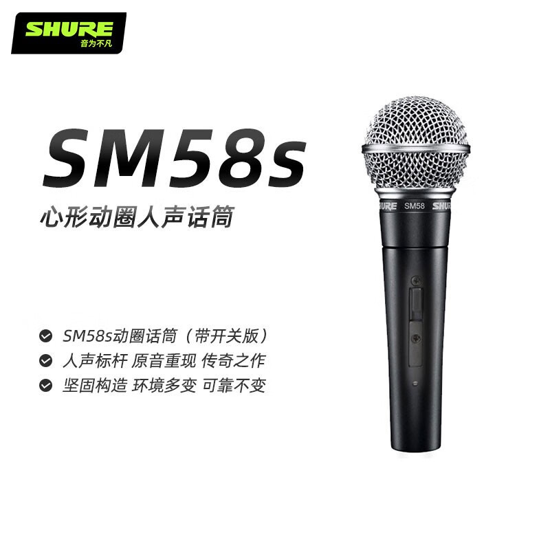 舒尔 Shure SM58S-CHN直播舞台表演出家用K歌动圈有线话筒麦克风价格:641.00元!