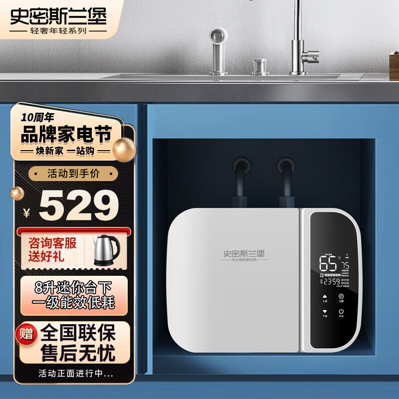 史密斯兰堡 电热水器储水式小厨宝家用8升一级能效1600W台下式厨房暖水宝上出水【自行安装】BLJ-G08价格:439.00元!