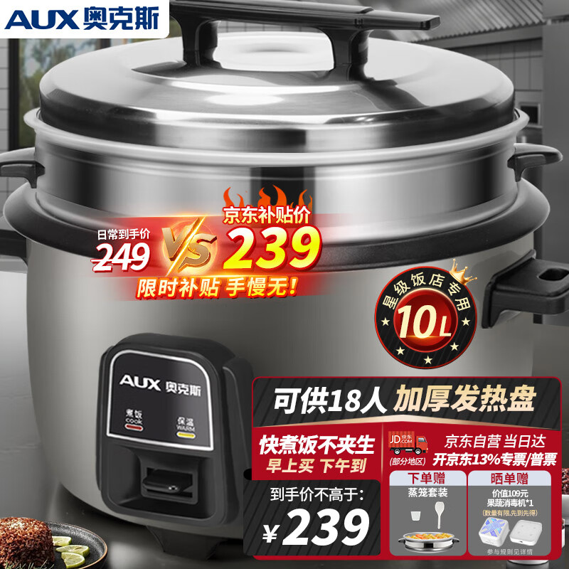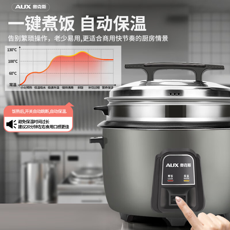 奥克斯(AUX)商用电饭锅酒店大电饭煲食堂用饭店西施保温蒸饭锅 大型电饭锅蒸笼 10升+蒸笼 适用10-18人价格:239.00元!