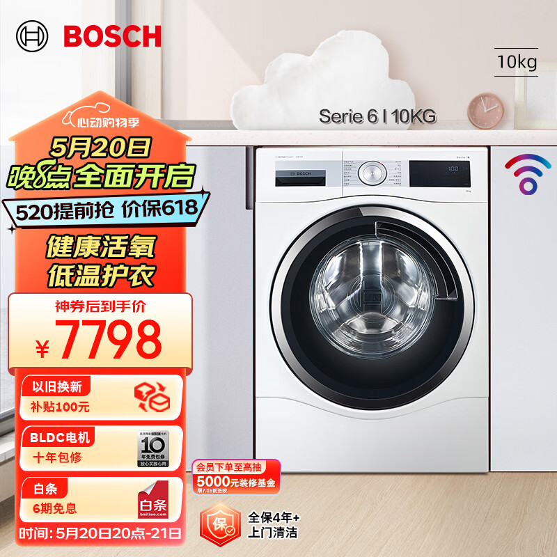 博世(BOSCH)【云朵白·活氧版】6系10KG全自动家用大容量1400转高效智能除菌除螨祛味滚筒洗衣机WGC354B01W价格:8598.00元!