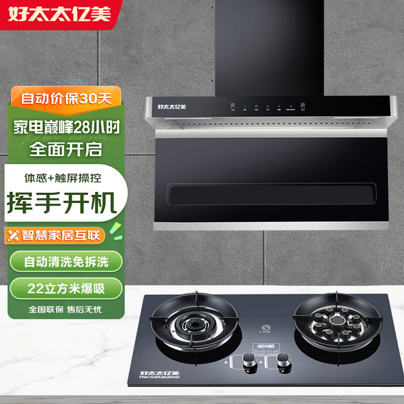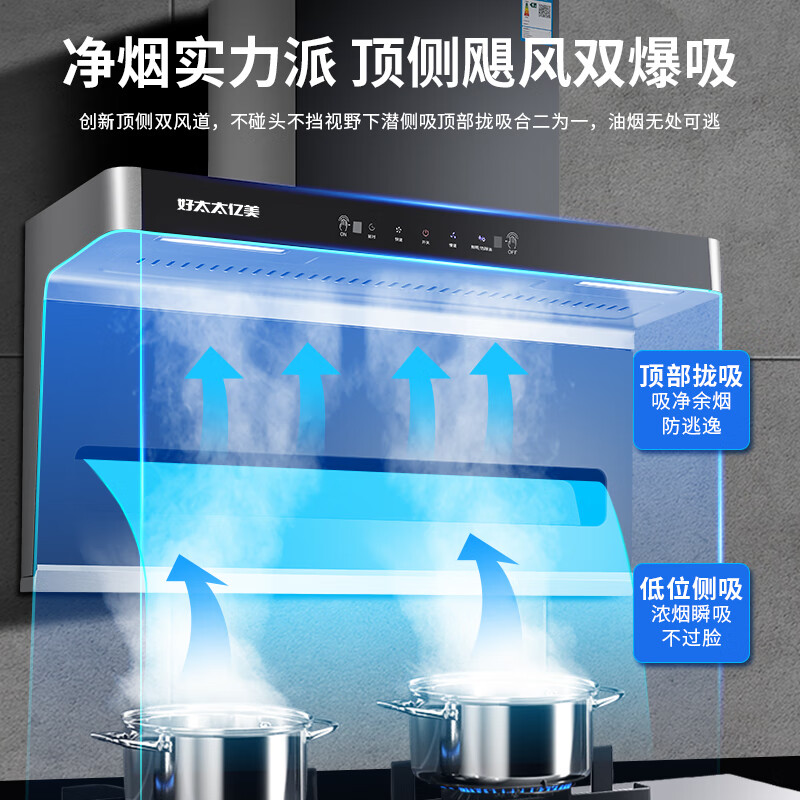 好太太亿美油烟机燃气灶套装22立方大吸力顶侧双吸抽油烟机家用液化气灶烟灶两件套CXW-238-839B7D1+JZY-B5Y价格:849.00元!