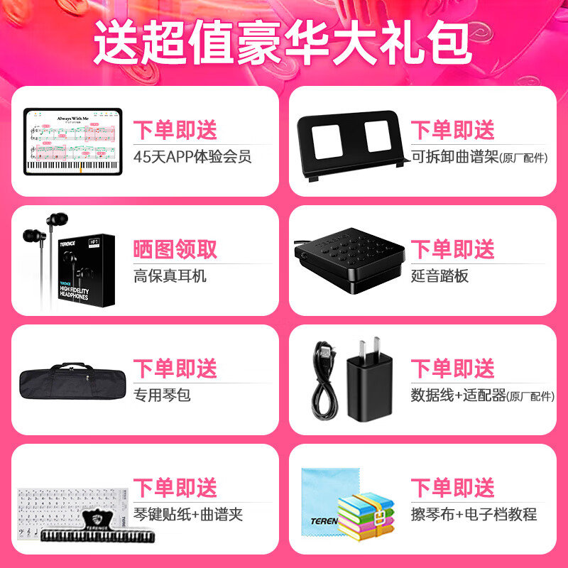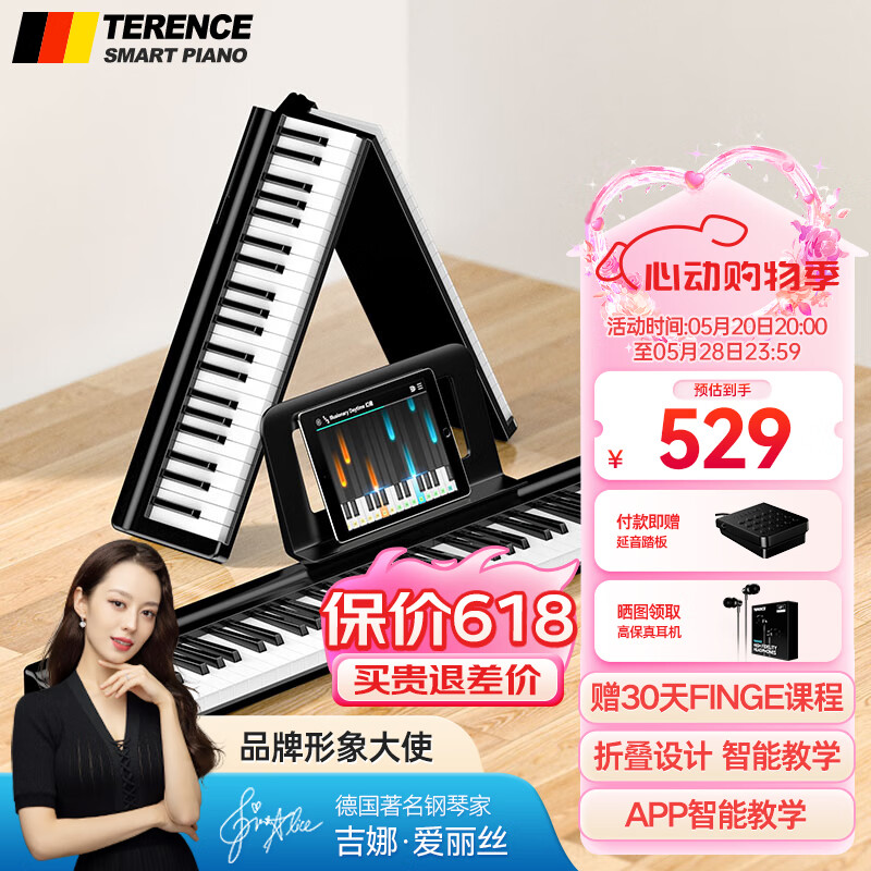 特伦斯 Terence 手卷钢琴88键折叠电子钢琴便携成人儿童演奏钢琴键盘价格:529.00元!
