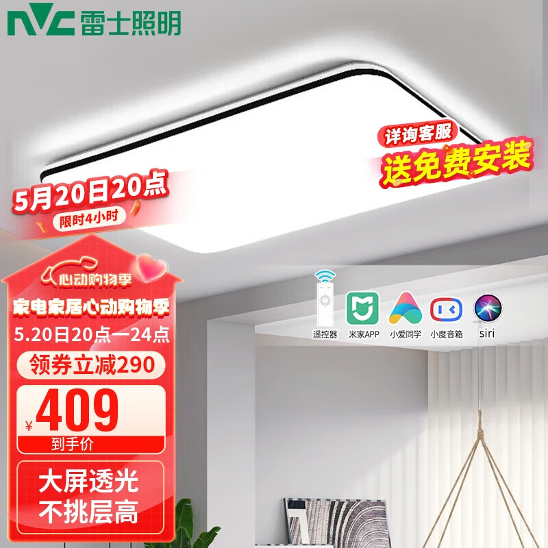 雷士照明(NVC)LED吸顶灯客厅大灯 现代简约超薄灯饰灯具 米家智能调光 120W价格:699.00元!