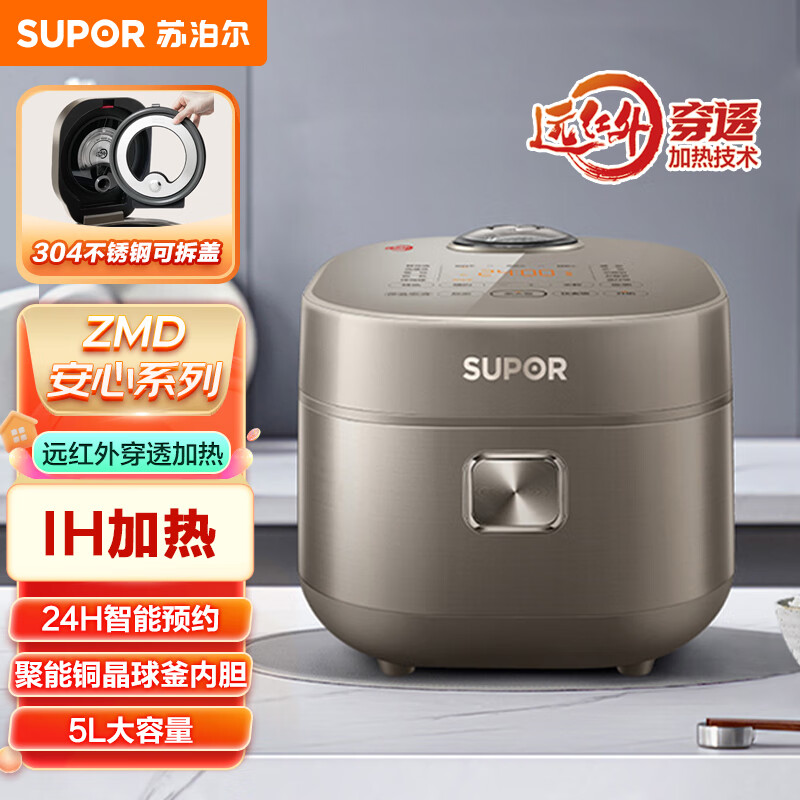 苏泊尔(SUPOR)ZMD安心系列 远红外穿透加热 IH电磁加热 5L电饭煲SF50HC82价格:1399.00元!