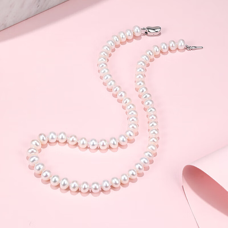周六福S925银扣淡水珍珠项链女妈妈生日礼物 扁圆约7.5mm 45cm价格:504.00元!