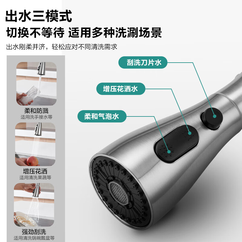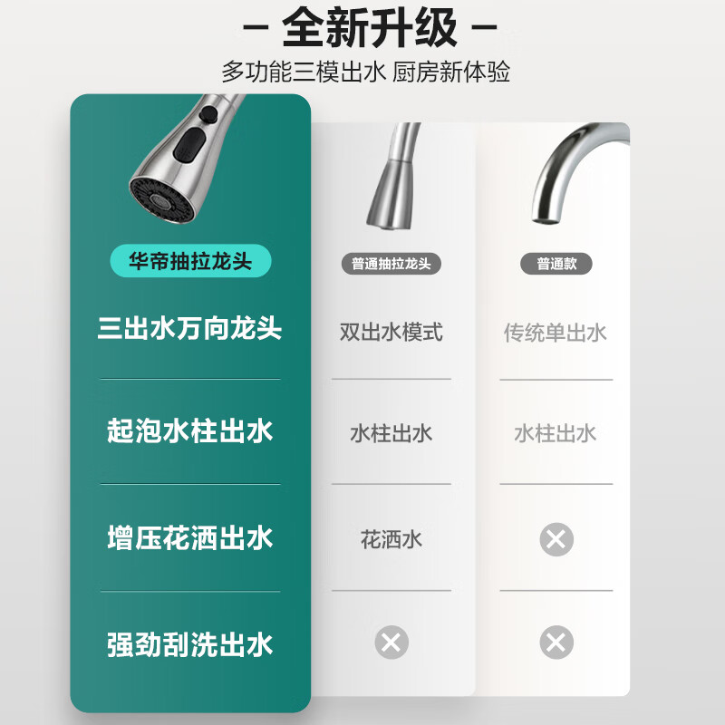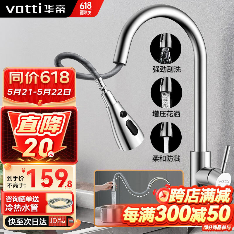 华帝(VATTI)厨房水龙头冷热水槽洗菜盘 万向旋转抽拉式延伸家用 304不锈钢价格:300.80元!