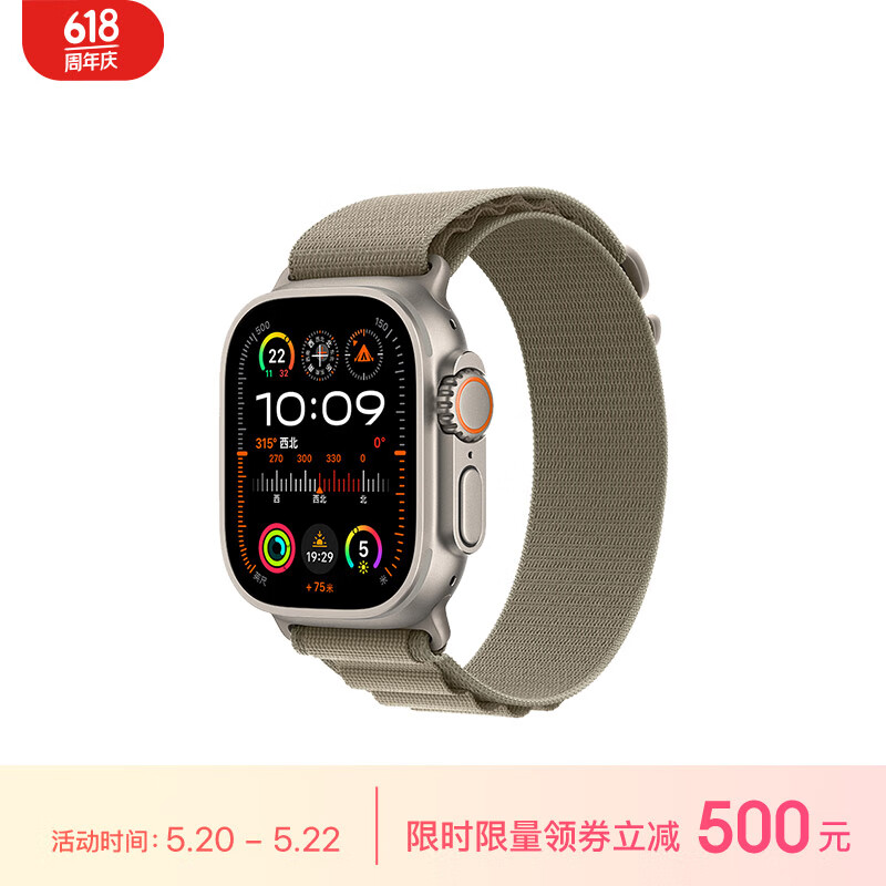 Apple/苹果 Watch Ultra2 智能手表GPS+蜂窝款49毫米钛金属表壳橄榄色高山回环式表带小号MRFH3CH/A价格:6499.00元!