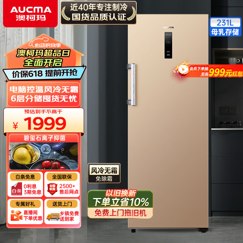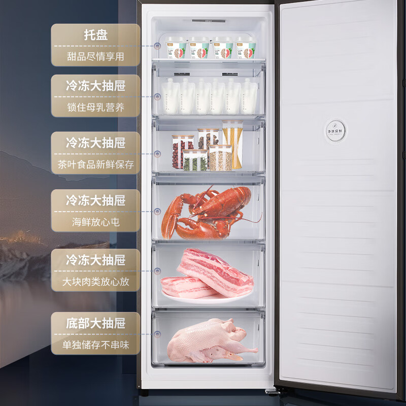 澳柯玛(AUCMA)231升立式冰柜家用冷藏冷冻两用大容量风冷无霜抽屉式 母婴母乳小冰柜 一级能效以旧换新BD-231WNE价格:1920.20元!